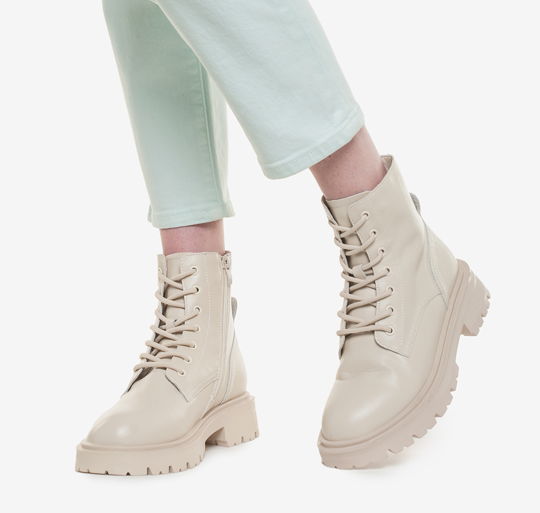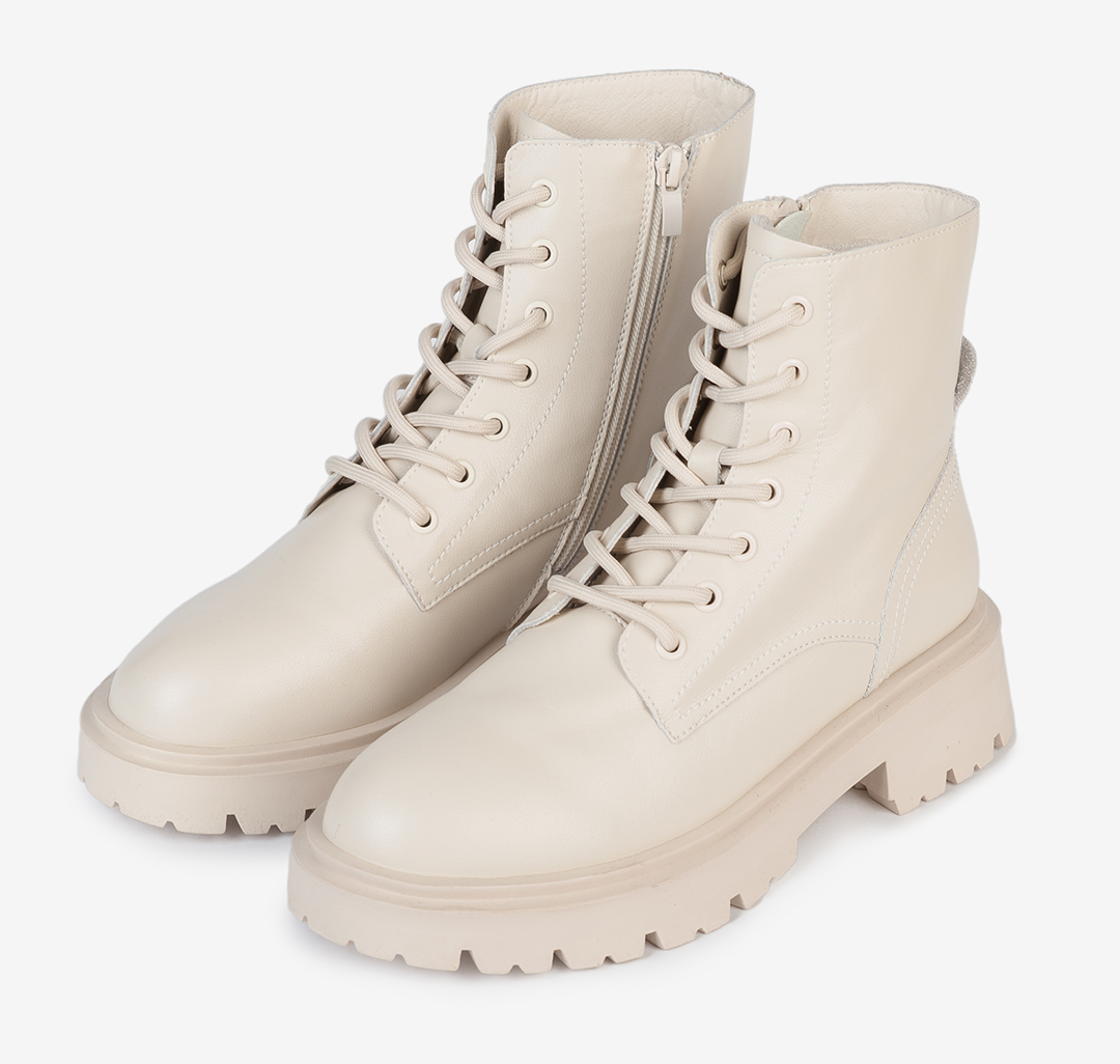 Универсальные ботинки из натуральной кожи, на боковом замке и с регулируемой шнуровкой. Эта модель составит стильную комбинацию с любой одеждой: джинсами, юбками и брюками — как строгими, так и спортивными. Ботинки доступны в двух базовых цветах.