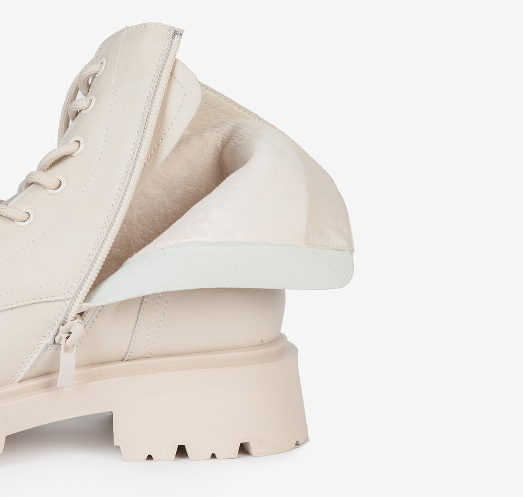 Для подошвы в этой модели мы использовали резину. Она гарантирует хорошее сцепление с поверхностью, что в сочетании с глубокими протекторами делает ботинки очень устойчивыми даже на скользкой поверхности. Также резина очень долговечна и прочна, снижает ударную нагрузку благодаря амортизационным свойствам.
