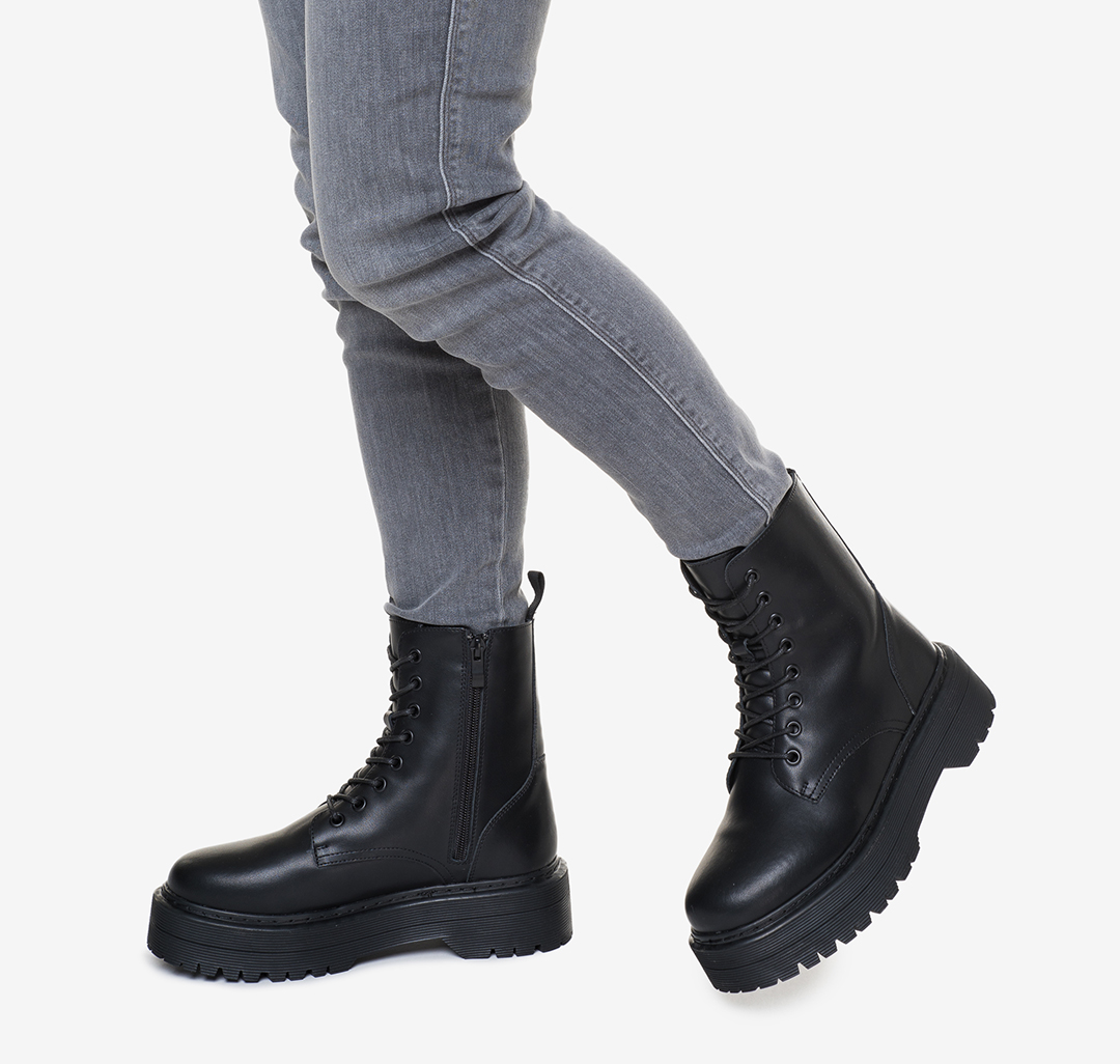 Стильные ботинки с овальным мысом и рельефной подошвой — трендовая модель, которая будет актуально не один сезон. Комфортная колодка, универсальный цвет и регулируемая шнуровка. Модель сшили из натуральной кожи. Температурный режим до -30°C.