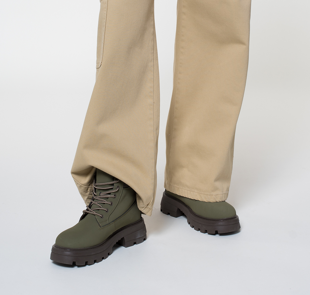 Изюминка модели — контрастный задник и текстильные шнурки. Смело сочетай ботинки с брюками и юбками, пуховиками и парками.