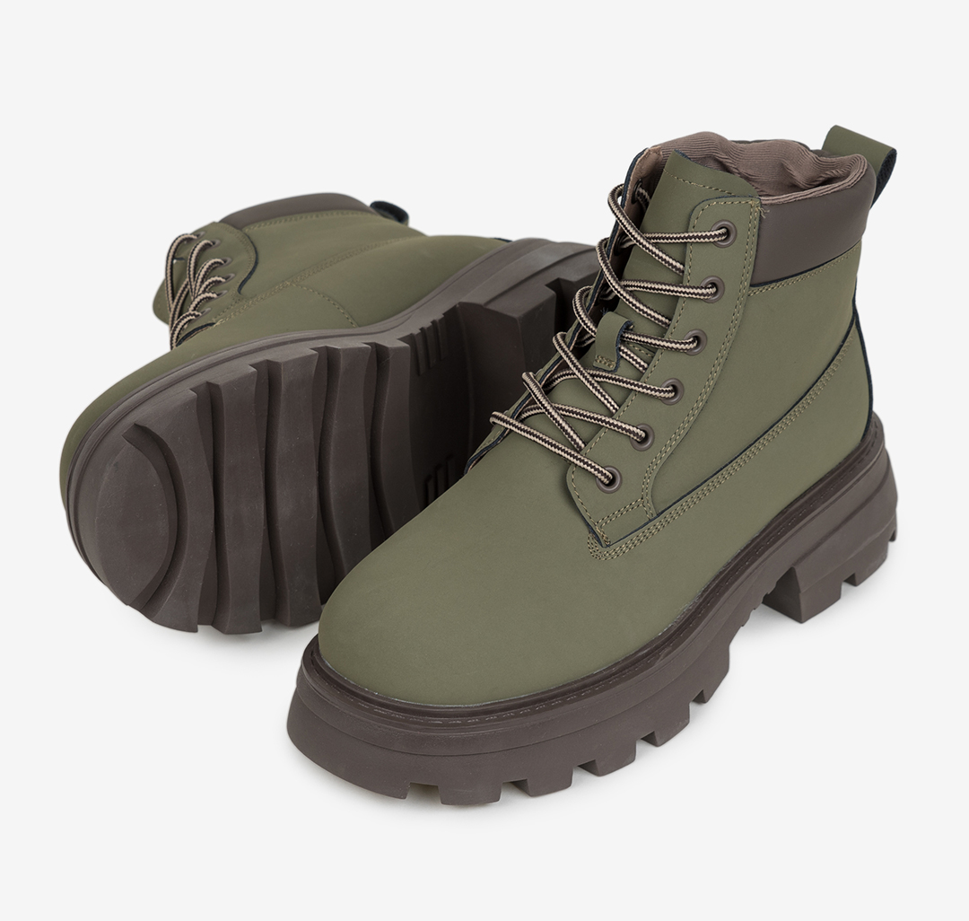 Минималистичные зимние ботинки для тех, кто ценит комфорт. Выбирай из двух универсальных цветов: модель в цвете хаки из нубука или бежево-коричневая из спилка. Из всех видов натуральной кожи именно эти два материала лучше всего держат тепло, а шерстяной подклад и вовсе снимает любые ограничения по температурному режиму.