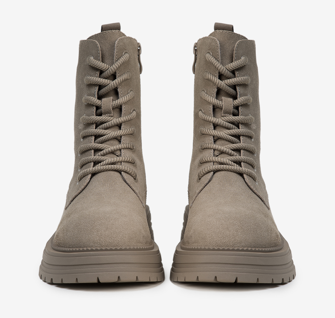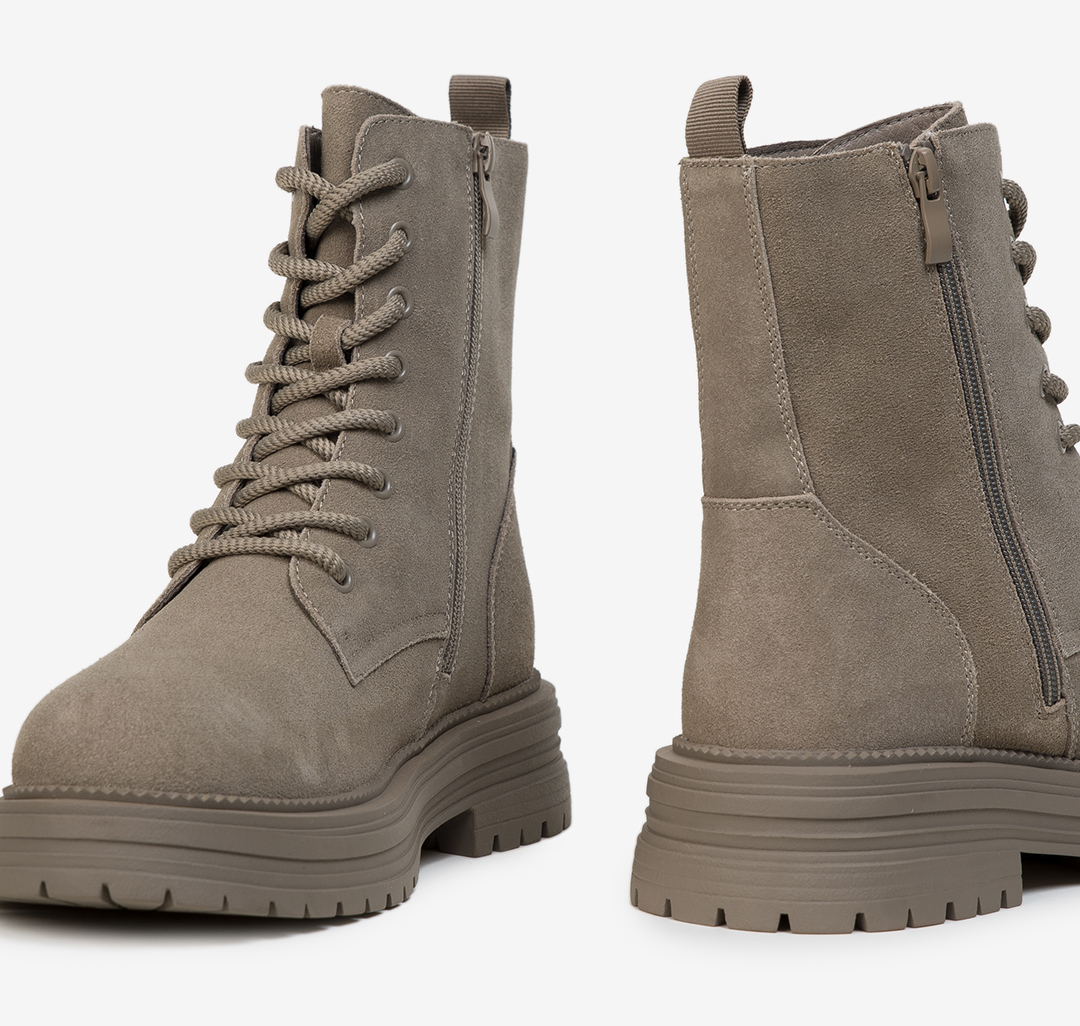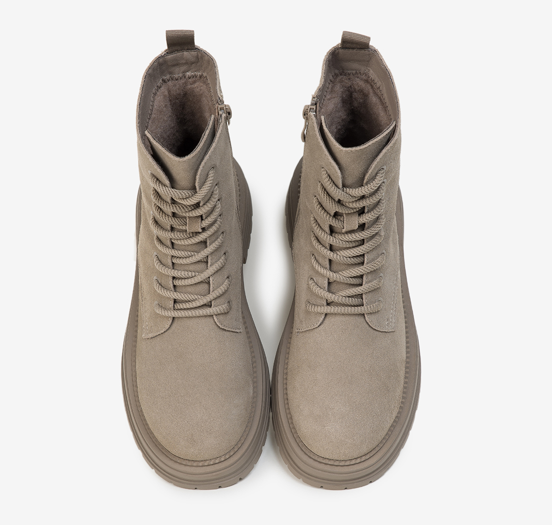 Лаконичные зимние ботинки из натуральной кожи. Три универсальные расцветки, удобная и актуальная тракторная подошва, а также красивая замшевая фактура кожи — эта модель объединяет в себе комфорт и стиль!