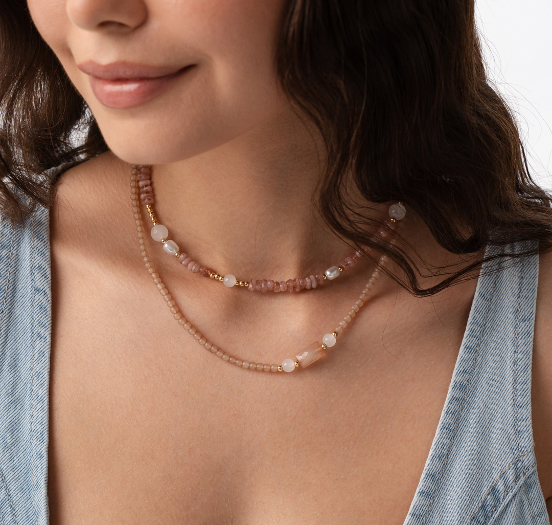 Набор колье (2 шт) розовый-молочный-золото арт. 1235-013 152356