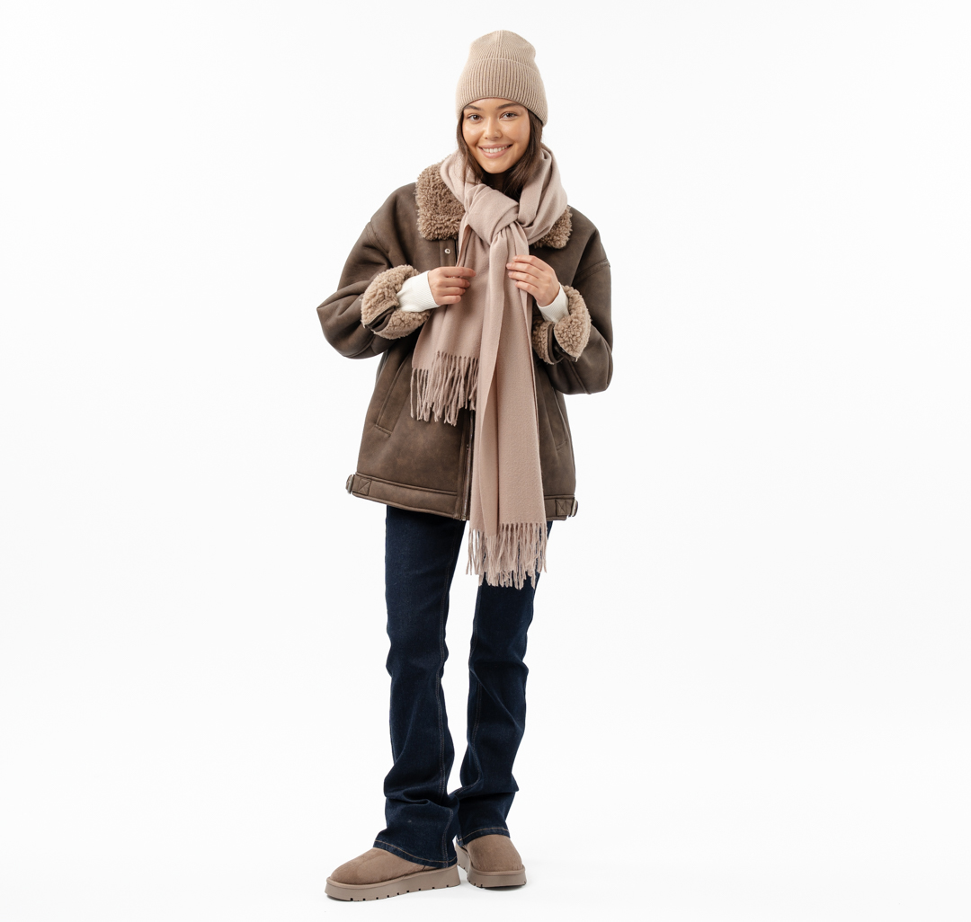 Модель состоит из смеси полиэстера и вискозы. Такой материал отлично сохраняет тепло, он нежный на ощупь и при этом очень практичен: устойчив к растяжению и деформациям, прост в уходе, долговечен.