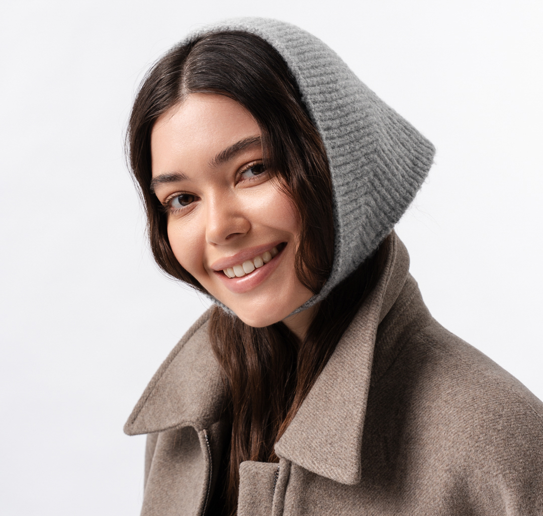 Повязка на голову в форме косынки — трендовая альтернатива классической шапке. Благодаря продуманному фасону с уже соединёнными концами она очень удобна и добавляет образу мягкую женственность.