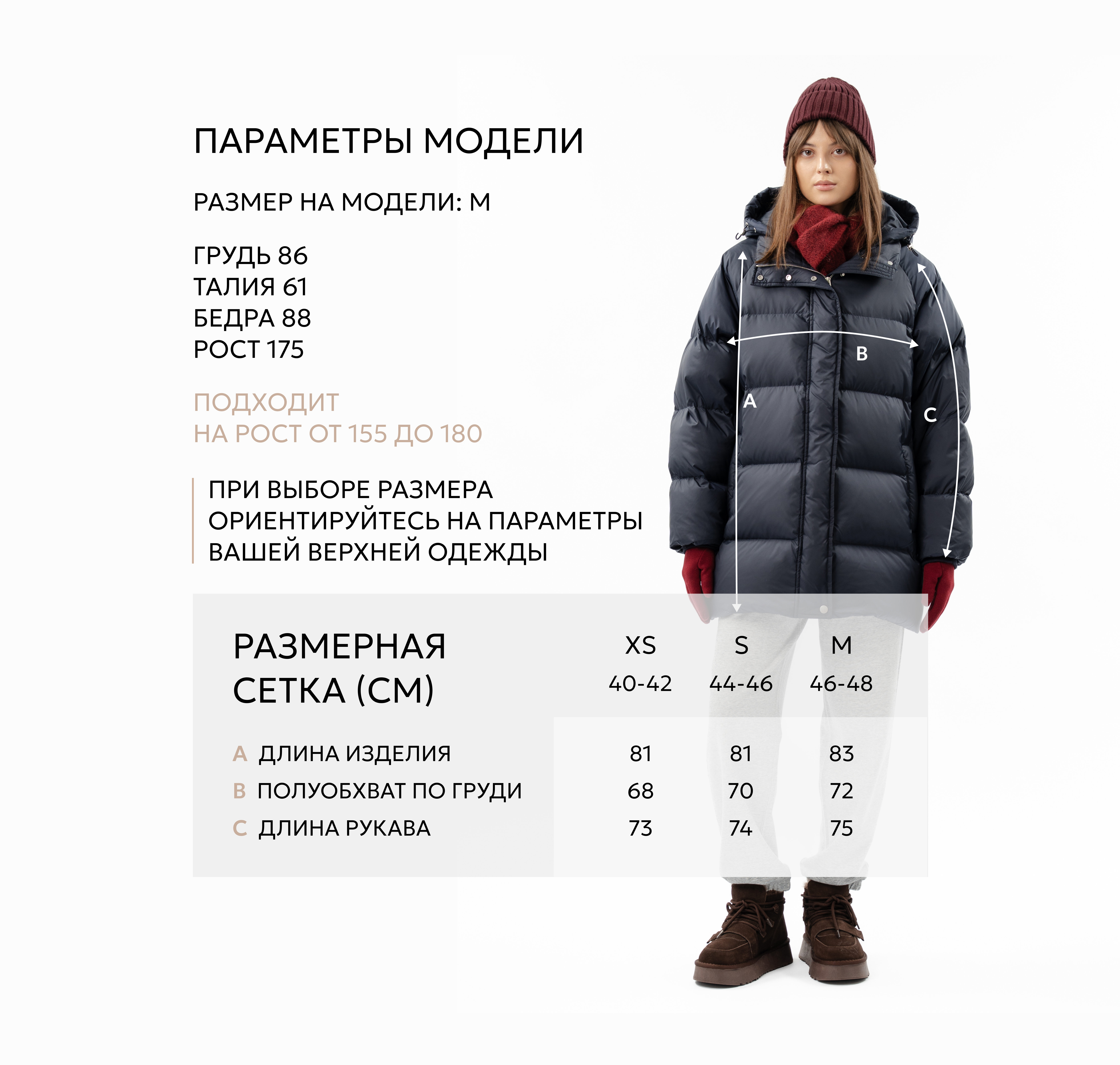 Пуховик обеспечит комфорт и тепло, подходит для температуры до -20/-25 градусов. Состав наполнителя — 90% пух и 10% перо. Характеристика Fill Power, которая показывает упругость и качество пуха, тоже на высоте — 650 единиц. Натуральный пух отлично сохраняет тепло при минусовой температуре, за дополнительную защиту во время снегопадов отвечает влагостойкая пропитка, а руки согревают плотные манжеты.