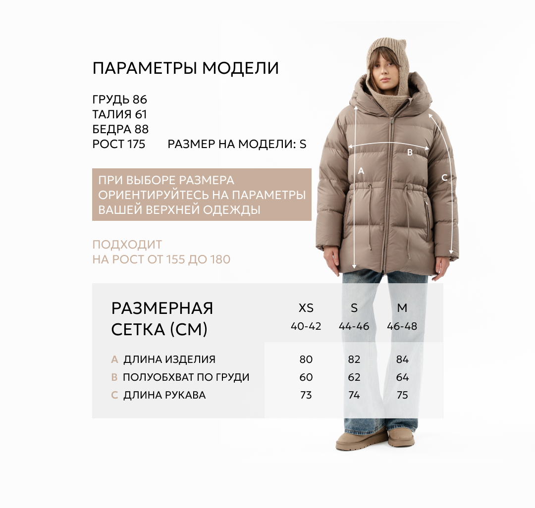 Пуховик очень теплый благодаря натуральному наполнителю: 90% пух и 10% перо, показатель качества пуха Fill Power — 650 единиц. Для дополнительной защиты от осадков использована гидрофобная пропитка SmartDown. Эту модель можно смело носить до -20/-25 градусов!