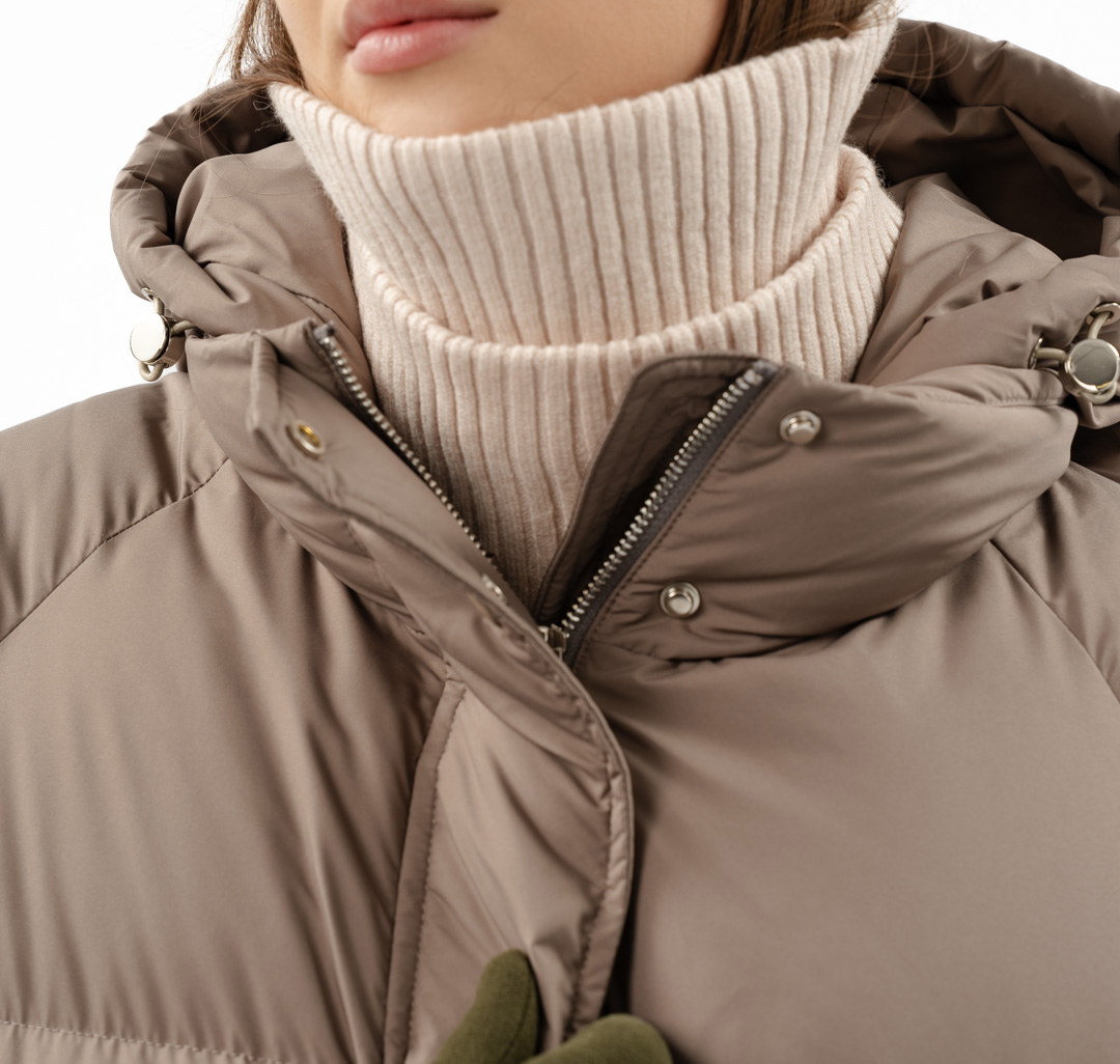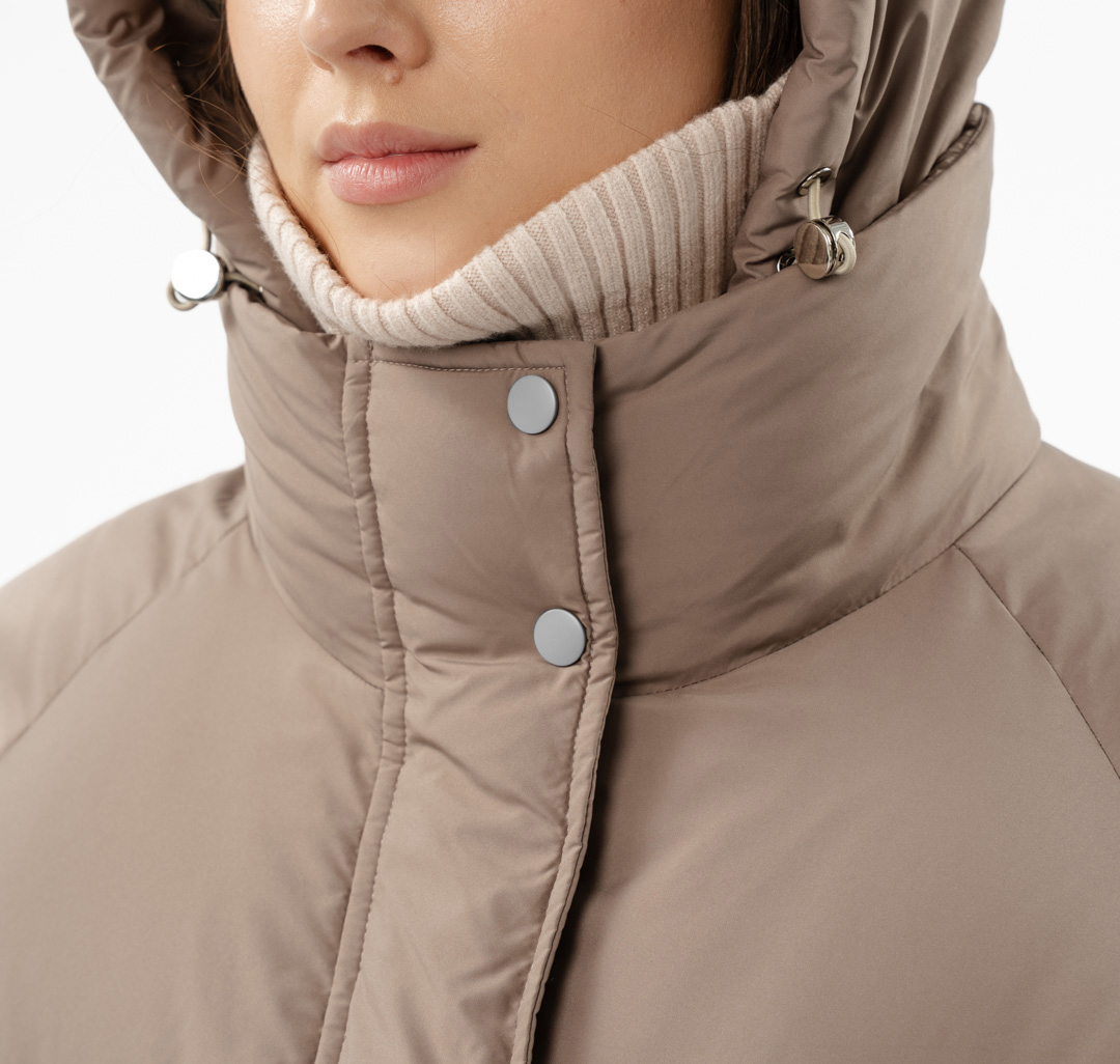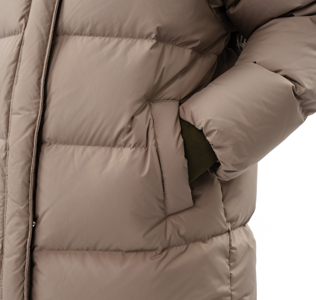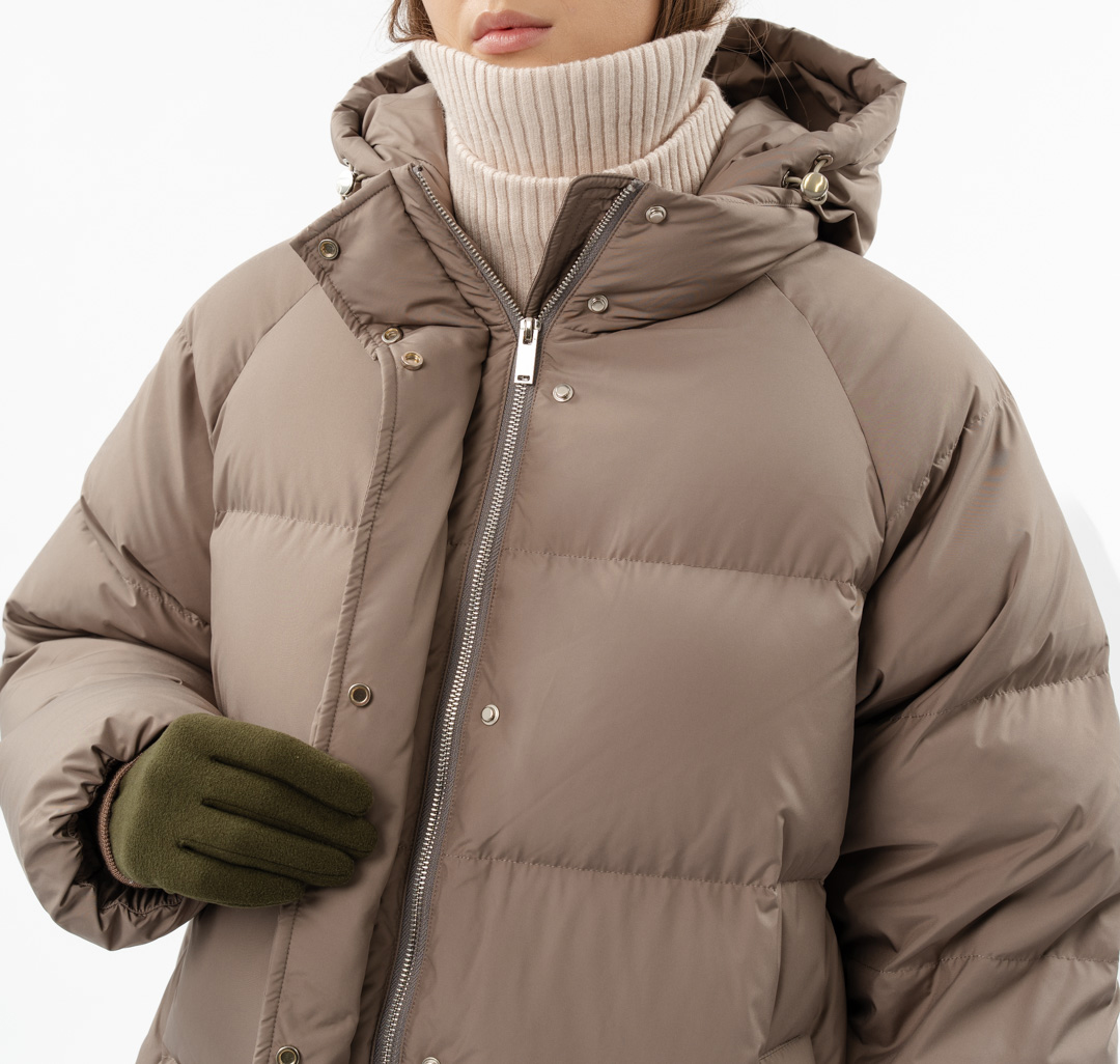 Пуховик обеспечит комфорт и тепло, подходит для температуры до -20/-25 градусов. Состав наполнителя — 90% пух и 10% перо. Характеристика Fill Power, которая показывает упругость и качество пуха, тоже на высоте — 650 единиц. Натуральный пух отлично сохраняет тепло при минусовой температуре, за дополнительную защиту во время снегопадов отвечает влагостойкая пропитка, а руки согревают плотные манжеты.