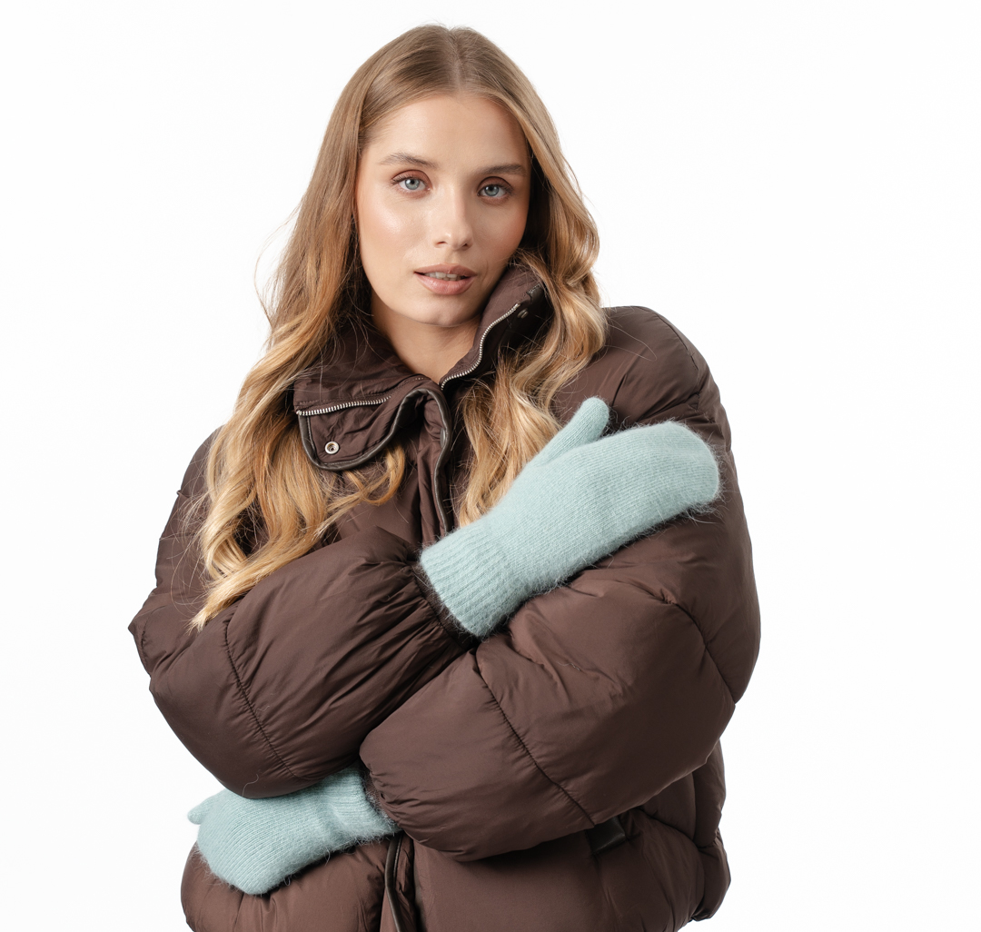 Рукавицы выполнены из ангоры, шерсти и акрила. За счет добавления акрила они неприхотливы в уходе и практичны, а два вида шерсти гарантируют сохранение тепла и мягкость.
