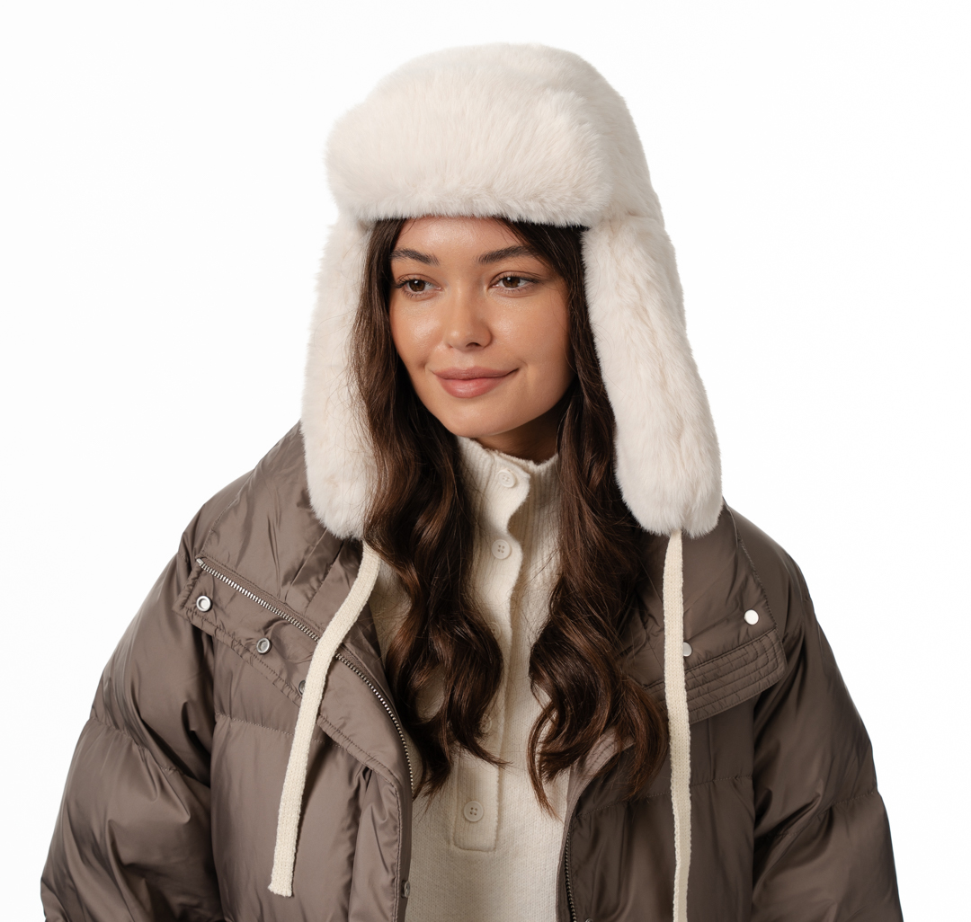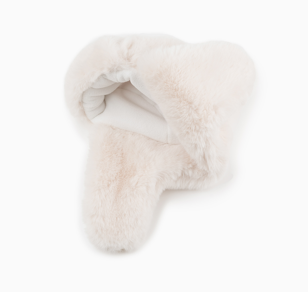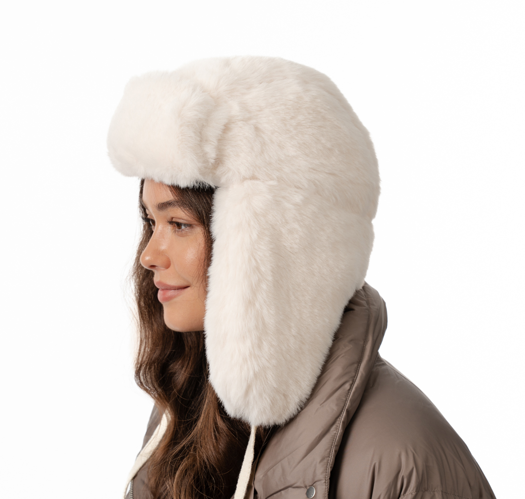Шапка-ушанка — тренд, который открывает простор для фантазии! Эта модель из искусственного меха, с мягкой подкладкой и отворотом в передней части выполнена в нежном молочном цвете, который подойдет к большинству образов.