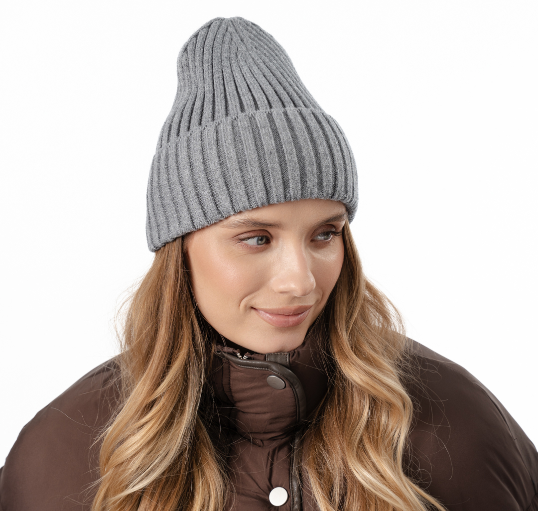 Шапки в крупный рубчик — это классика, которая одинаково выигрышно смотрится с любой верхней одеждой. Благодаря незакрепленному регулируемому подвороту модель можно адаптировать к любому образу, прическе, форме лица.