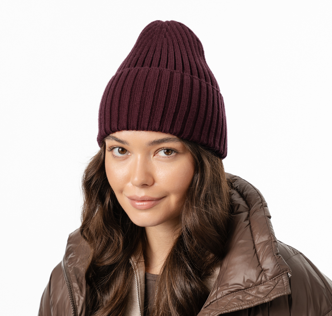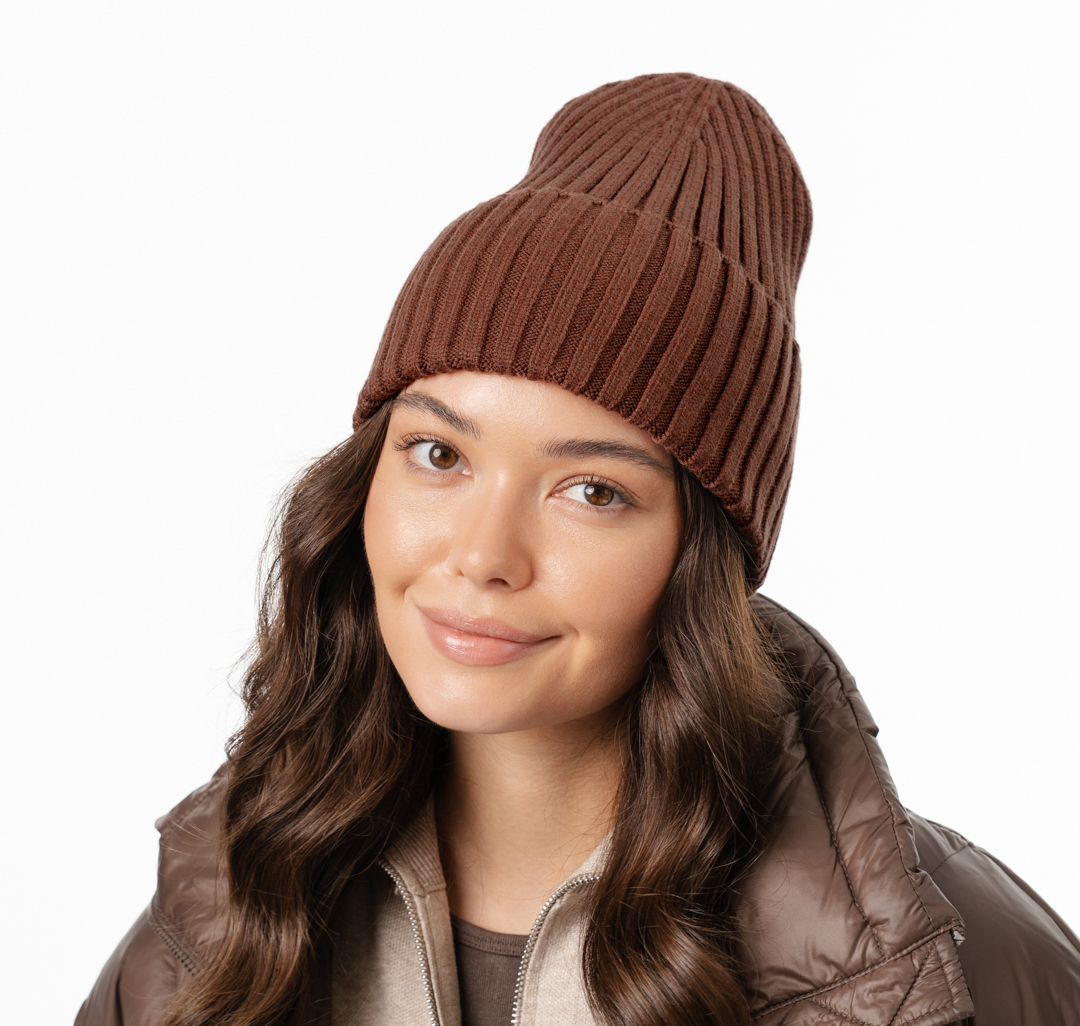 Шапки в крупный рубчик — это классика, которая одинаково выигрышно смотрится с любой верхней одеждой. Благодаря незакрепленному регулируемому подвороту модель можно адаптировать к любому образу, прическе, форме лица.