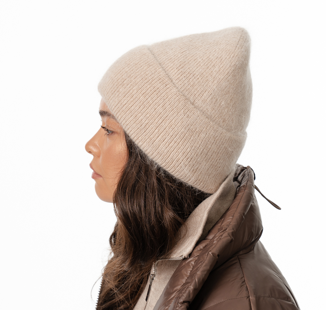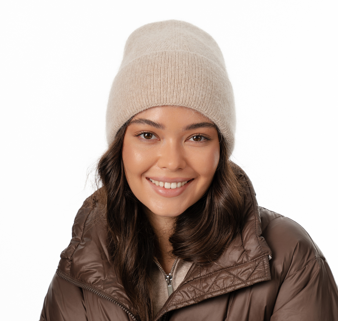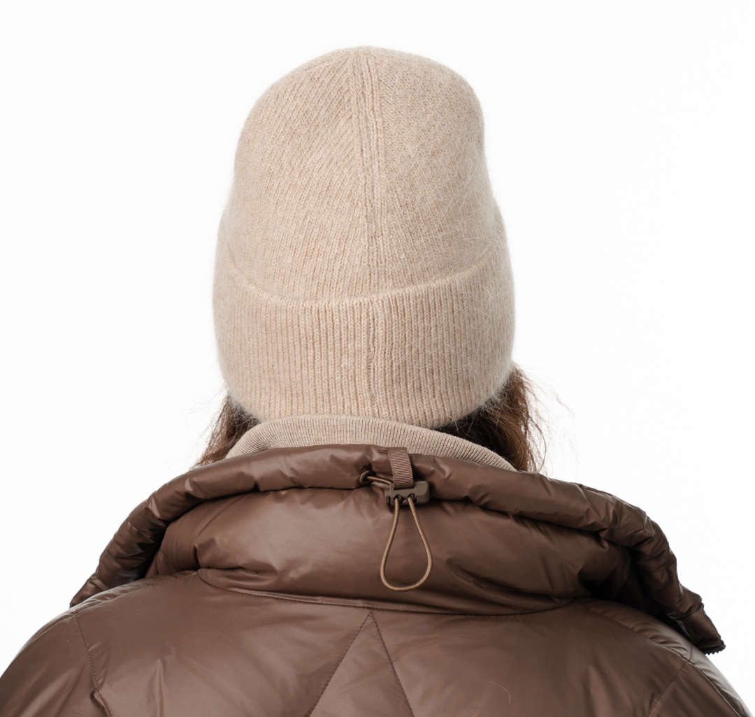 Материал шапки — 30% ангора, 5% шерсть и 65% акрил. Модель очень приятная тактильно и хорошо удерживает тепло. Она эластична, но при этом не теряет форму после стирки. Подкладка из флиса добавляет комфорта и тепла.