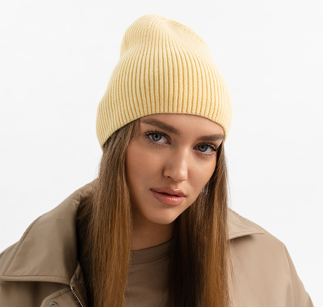 Такой головной убор универсален — и не только благодаря расцветке и самому популярному фасону. Можно носить шапку так, как хочется: с подворотом или без, высоко на макушке или опуская на лоб и уши. Какой бы вариант ты ни выбрала, модель будет плотно прилегать и хорошо держать форму.