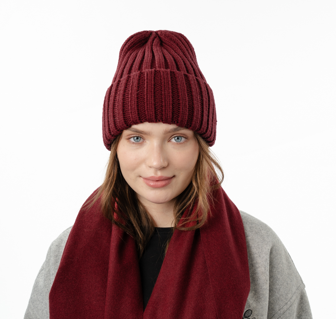 Для самых уютных и теплых образов — монохромная шапка-бини в крупный рубчик, с широким отворотом. В ассортименте более десятка оттенков на любой вкус!