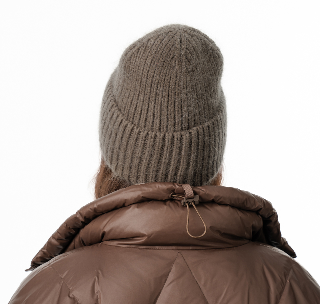 Подходит для сочетания с пуховиками, пальто, вязаными свитерами и демисезонными куртками. Силуэт и наличие отворота позволяют носить шапку разными способами.