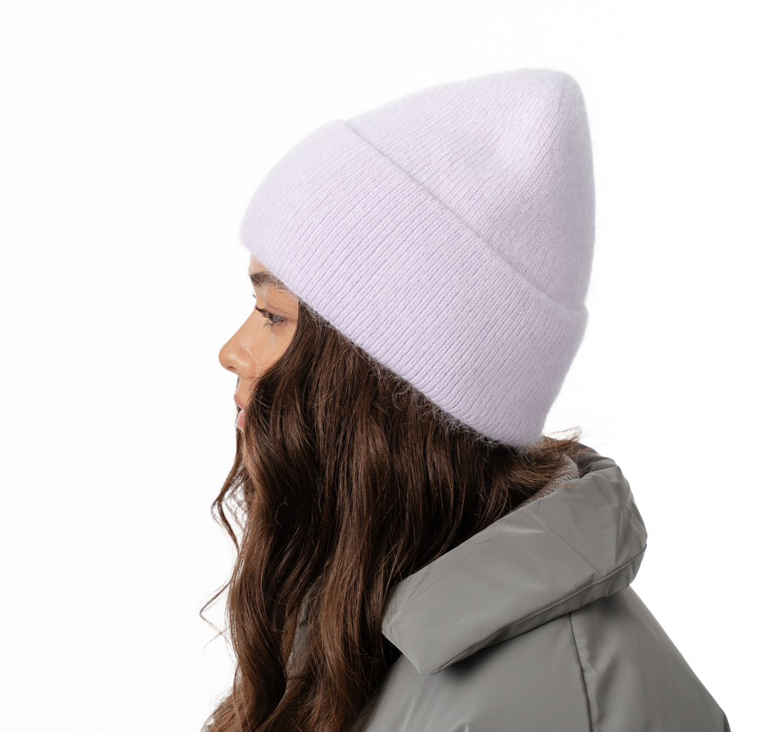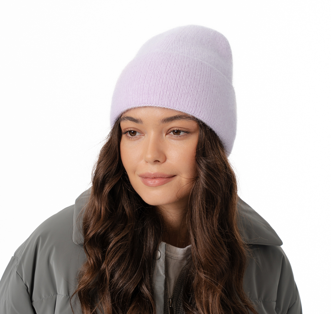 Материал шапки — 30% ангора, 5% шерсть и 65% акрил. Модель очень приятная тактильно и хорошо удерживает тепло. Она эластична, но при этом не теряет форму после стирки. Подкладка из флиса добавляет комфорта и тепла.