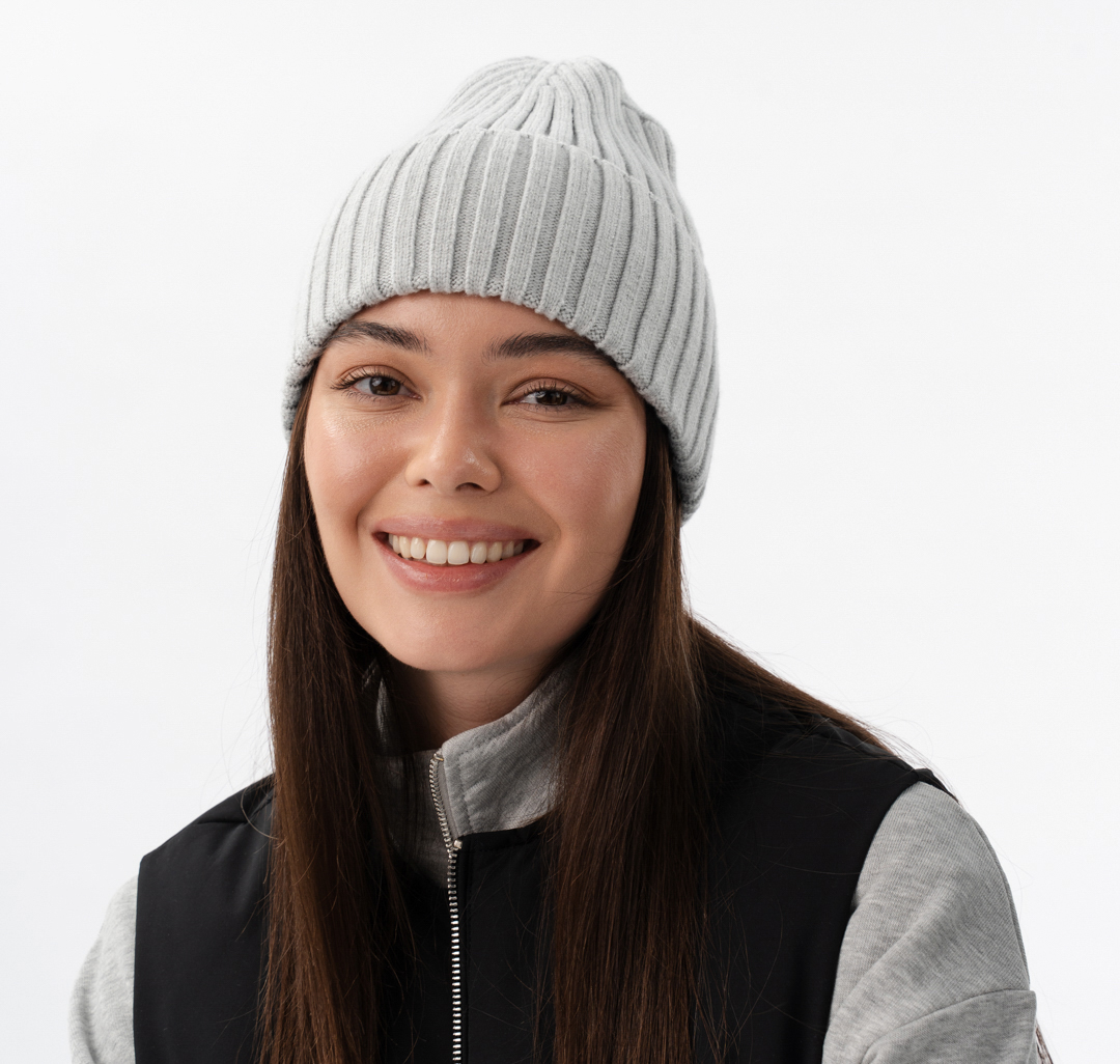 Шапки в крупный рубчик — это классика, которая одинаково выигрышно смотрится с любой верхней одеждой. Благодаря незакрепленному регулируемому подвороту модель можно адаптировать к любому образу, прическе, форме лица.