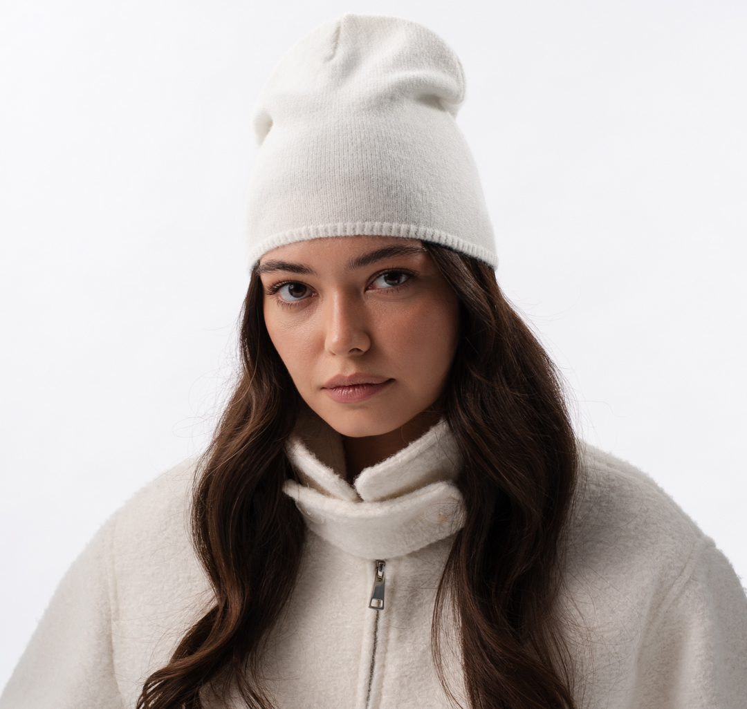 Такая модель гармонично смотрится с классическим пальто, стёганой курткой или пуховиком. Благодаря лаконичности шапку можно носить как с минималистичными образами, так и с более расслабленными комплектами в стиле casual.