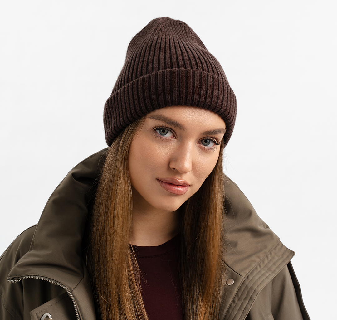 Шапка-бини в рубчик, с небольшим отворотом — модель вне времени! В ассортименте есть как нейтральные, так и более яркие оттенки, так что ты с легкостью выберешь вариант под настроение и образ.