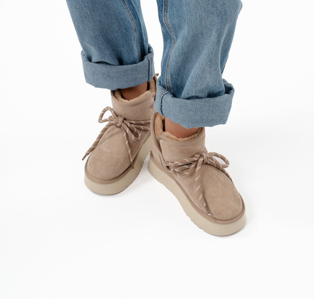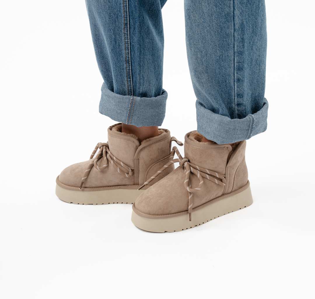 За что мы любим угги? За универсальность, практичность, тепло и комфорт! Всё перечисленное ты найдешь в этой модели: благодаря своей лаконичности она подойдет к любому образу, а качественные материалы защитят от холода в самый разгар зимы. Минималистичная шнуровка в тон и петелька на заднике добавляют удобства при надевании и носке. Угги доступны в нескольких базовых цветах.