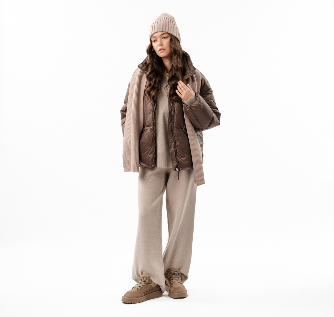 Верх выполнен из премиальной экозамши с водоотталкивающей пропиткой. Бархатистая фактура материала добавляет модели уюта и проста в уходе. Задник отделан экомехом — это практично и удобно. Подклад тоже выполнен из экомеха плотностью 1000 г/м. Угги очень теплые — их можно носить до -30С.