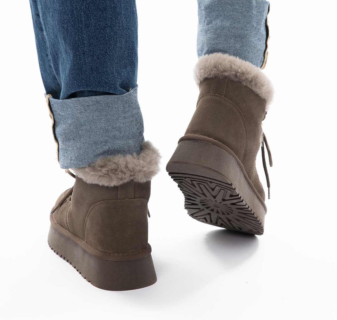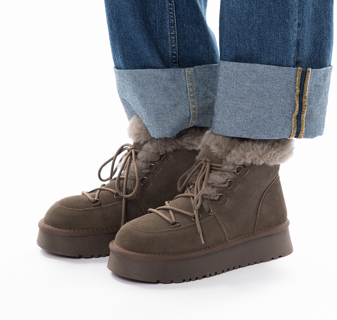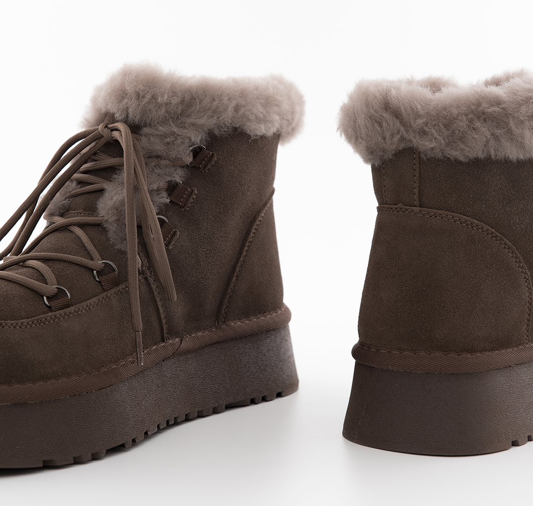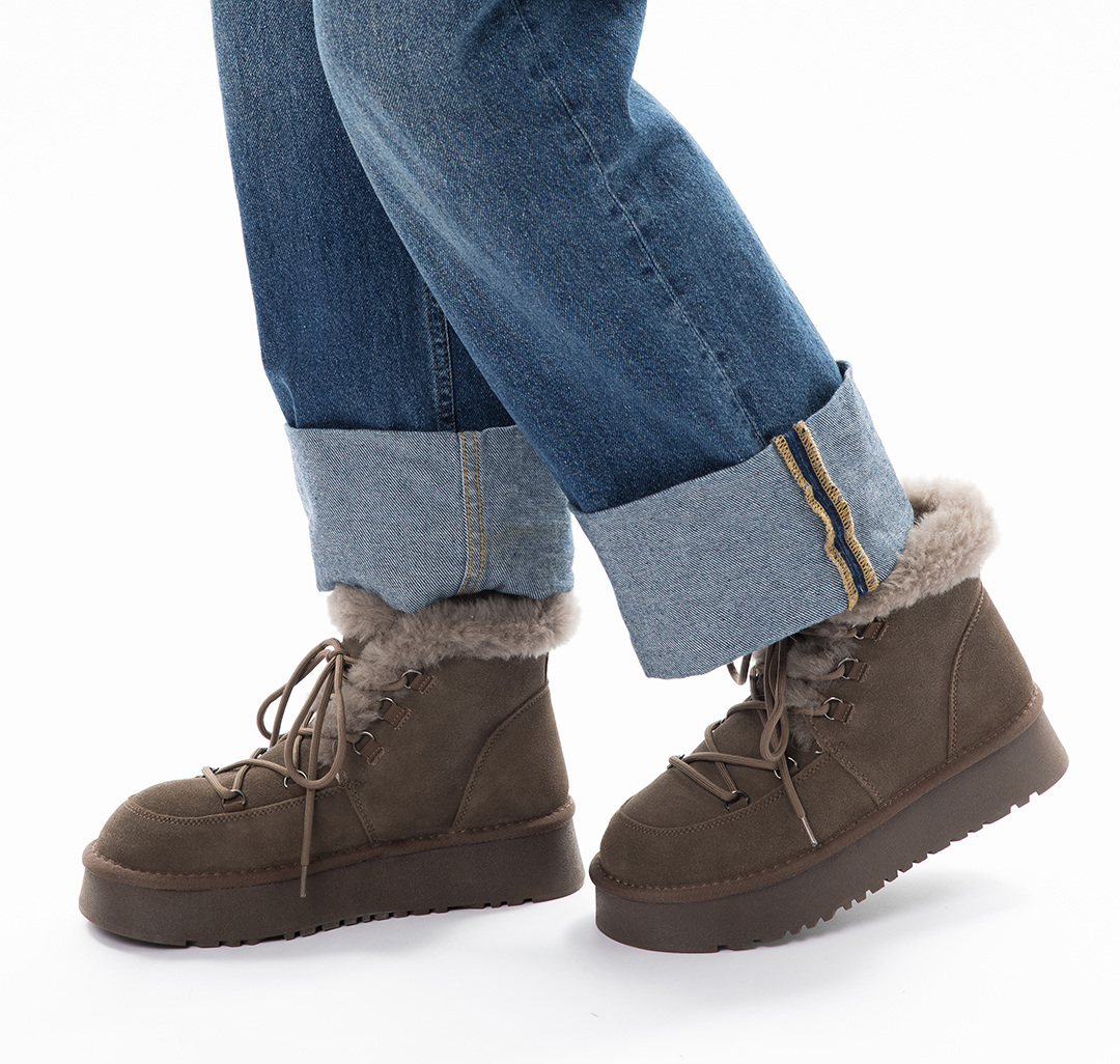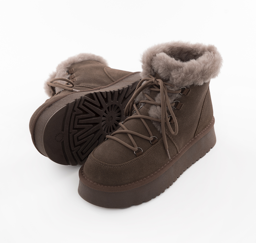 Угги на шнуровке — зимняя обувь, которая будет гармонично смотреться в любом casual-образе! Сочетай с теплыми пальто или пуховиками, шубами или дубленками: в любой из аутфитов угги с меховой отделкой добавят уюта.