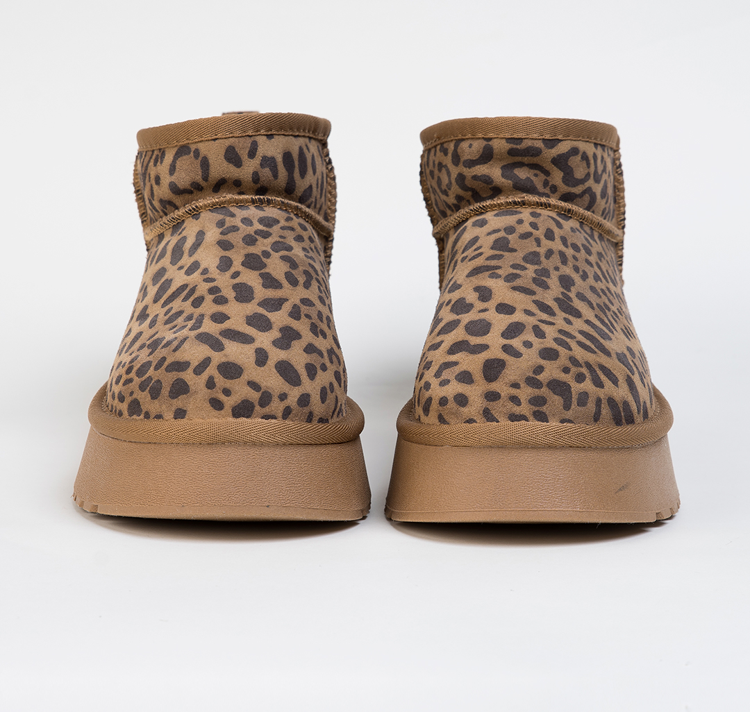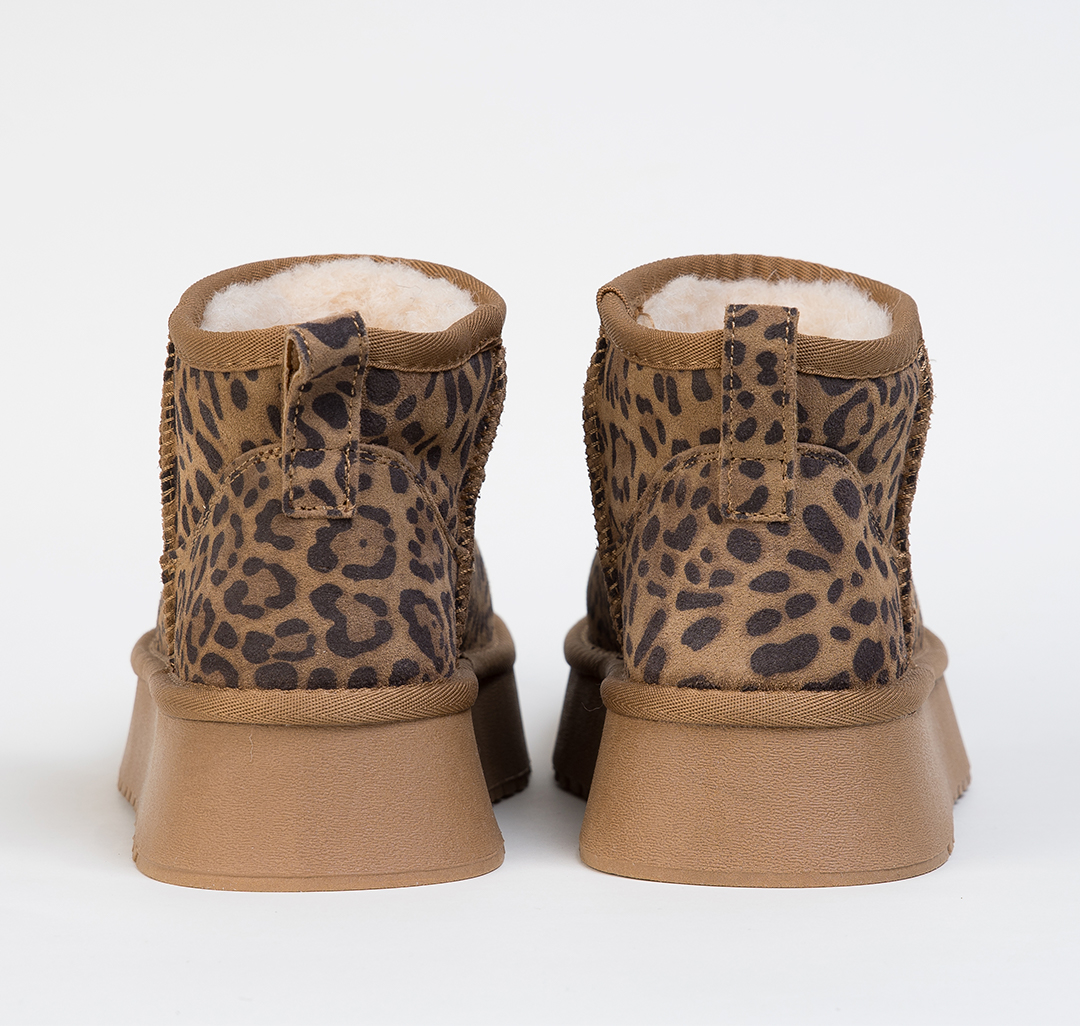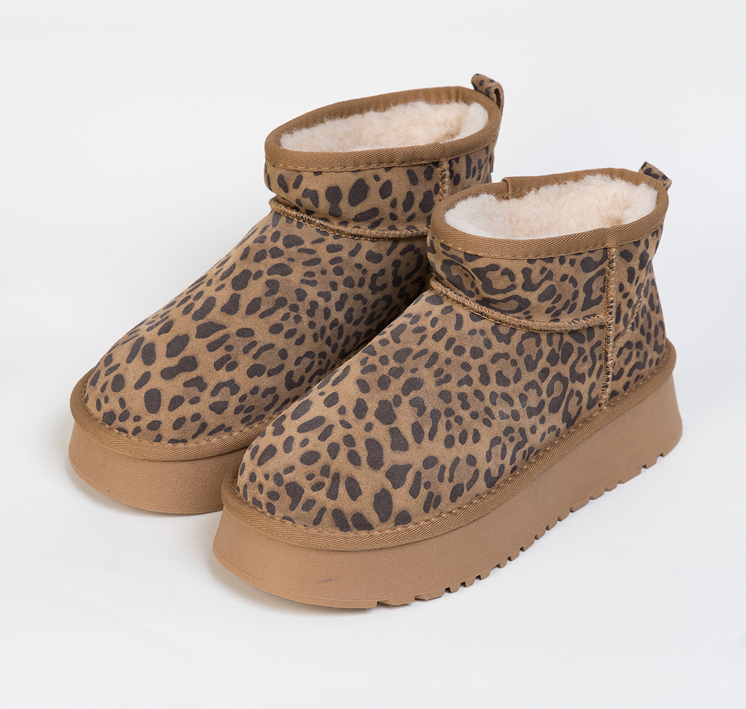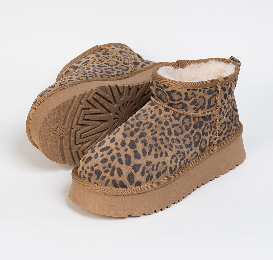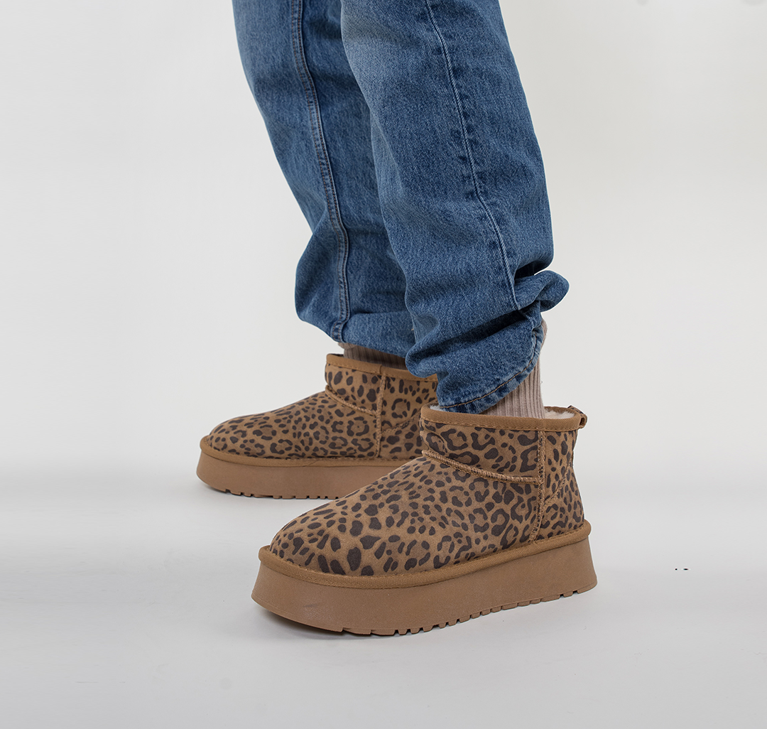 Зима — не повод отказываться от стильных аутфитов! Укороченные угги с трендовым леопардовым принтом станут акцентной деталью твоих casual-образов, и одновременно с этим в них будет комфортно даже в -30С.