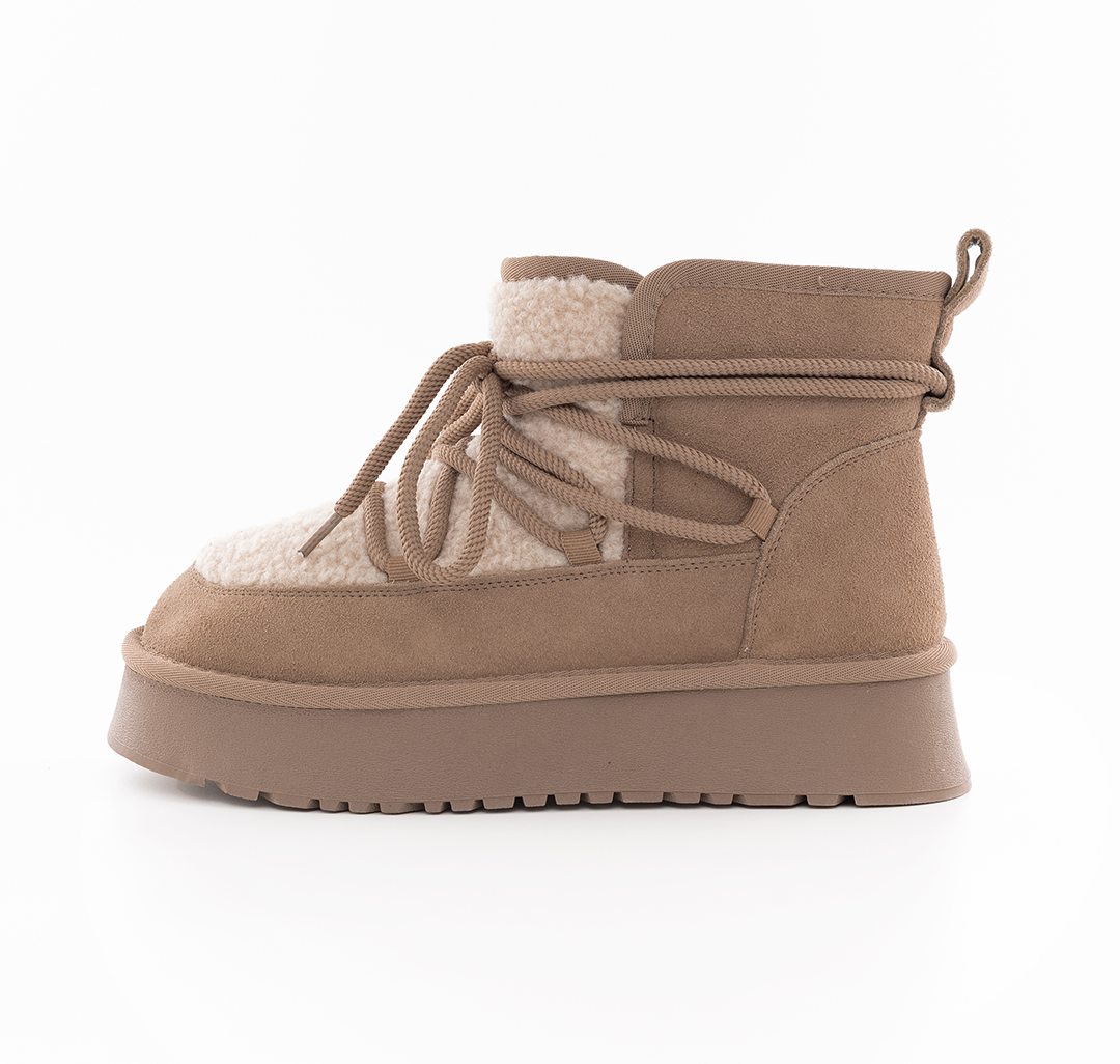 Высокая подошва сделана из нескользящей резины. Благодаря платформе ноги еще лучше защищены от мороза.