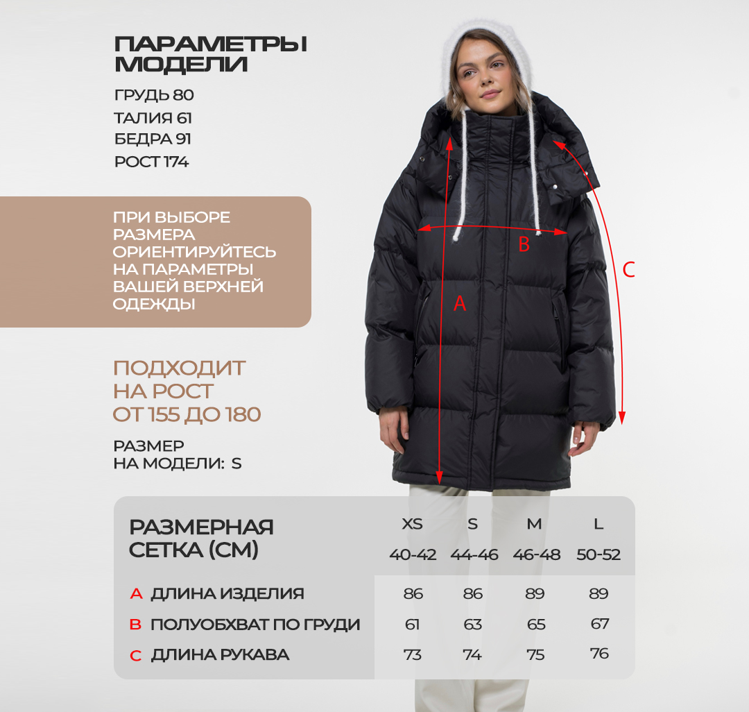 Пуховик средней длины с актуальной спущенной линией плеча арт. 1022-003 135327
